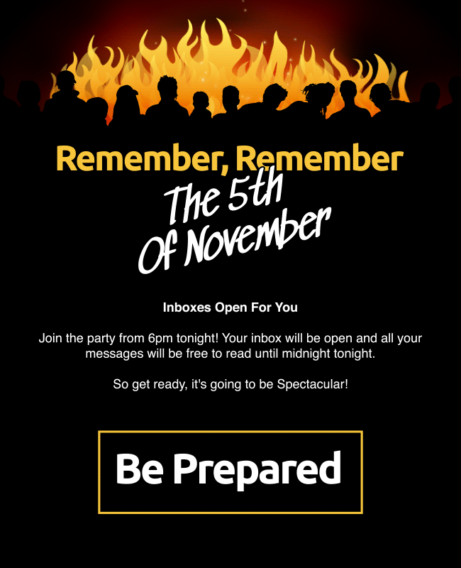 On the 5th November, for Bonfire Night, we sent out a Free Read opportunity to all basic members in all networks. This allowed them to read their messages for free between 6pm and midnight. This increased the number of peak members online by 108% and the number of first messages being sent by 150%.